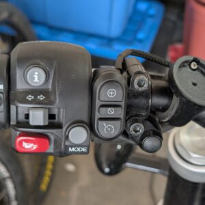 A 3 button switch for controlling the cruise functions is included. Fully watertight and durable. Mounts directly to standard 22mm handlebars with a fully opening bracket.