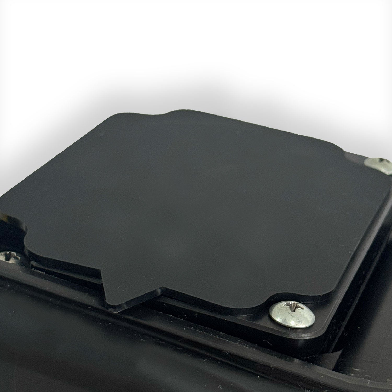 The FWF airbox lid is CNC-machined from durable Acetal plastic, designed with a 40% larger intake opening for increased airflow, provision for pre-filter fitment, and mounts securely to the standard airbox with ease.