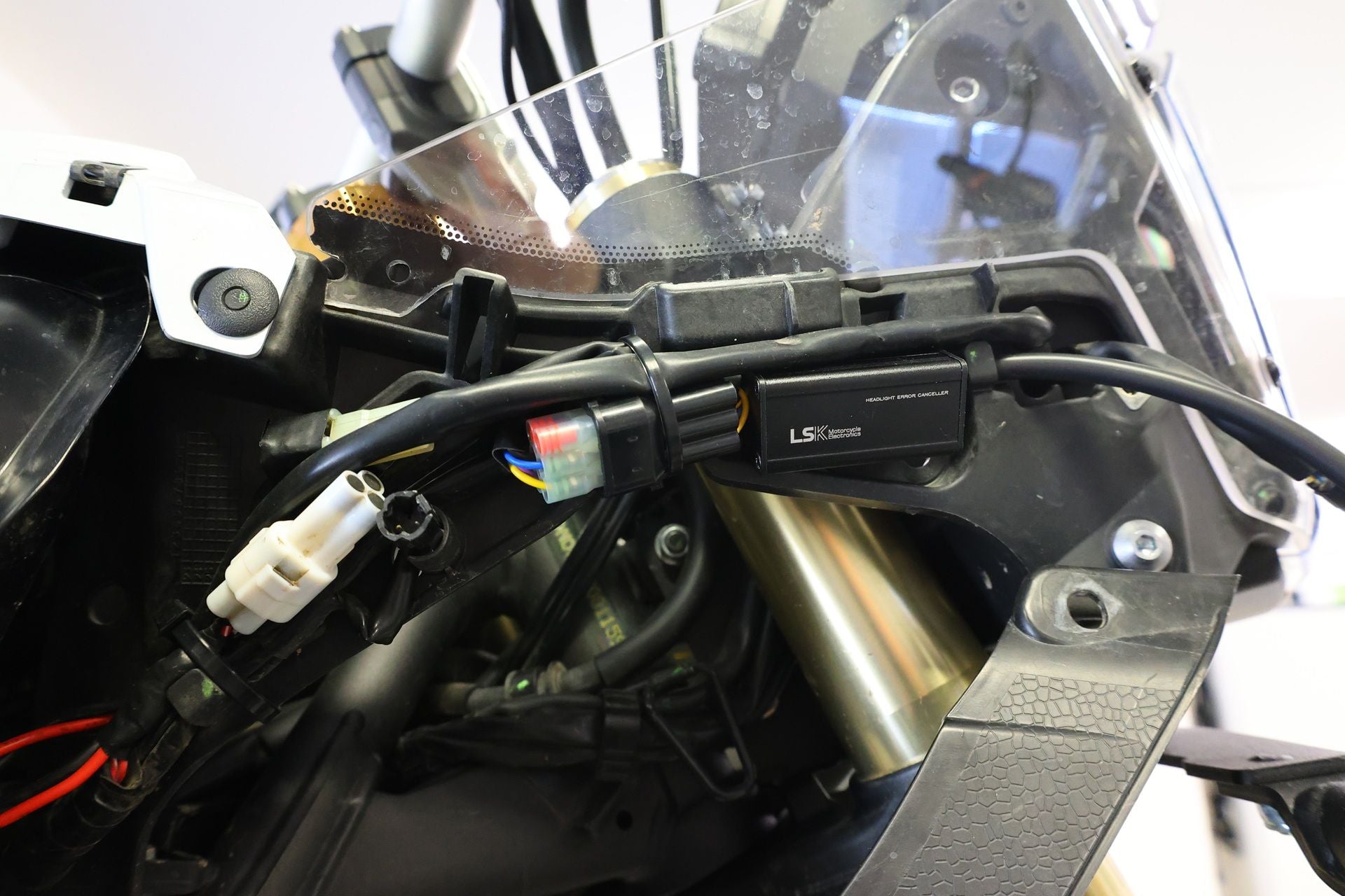 The Yamaha Tenere 700 Headlight Interface Module is a device that allows you to replace the original headlight with an aftermarket one using the bike's original headlight socket. It utilizes the same signals, ensuring that the motorcycle cannot distinguish between the original headlight and the aftermarket one connected through this device. This interface Module fits directly into the original Tenere 700 headlight socket, eliminating the need for any modifications to the motorcycle's wiring harness.